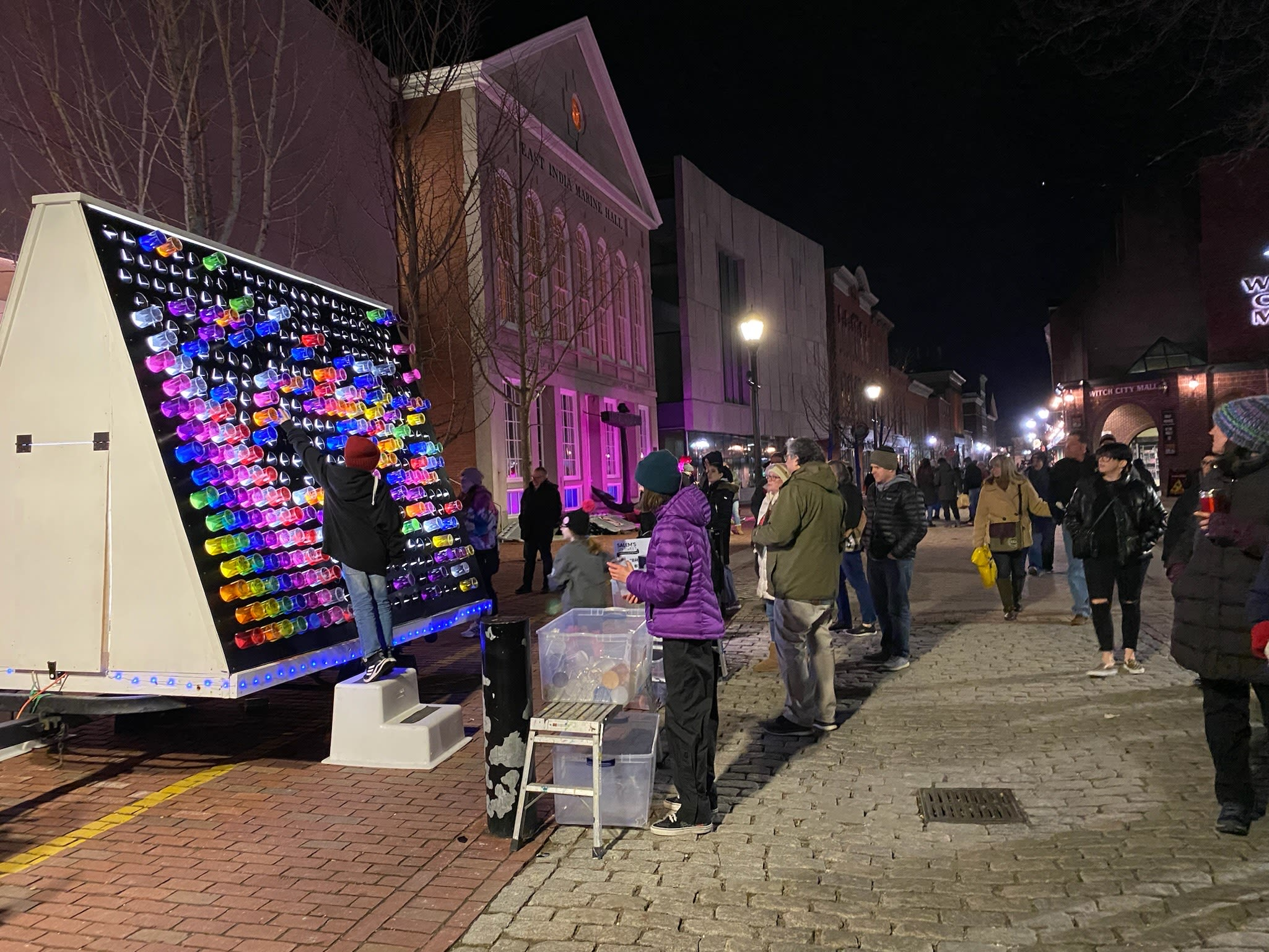 Iluminación de menorá en Inman Square e instalación de luces interactivas encendidas más brillantes