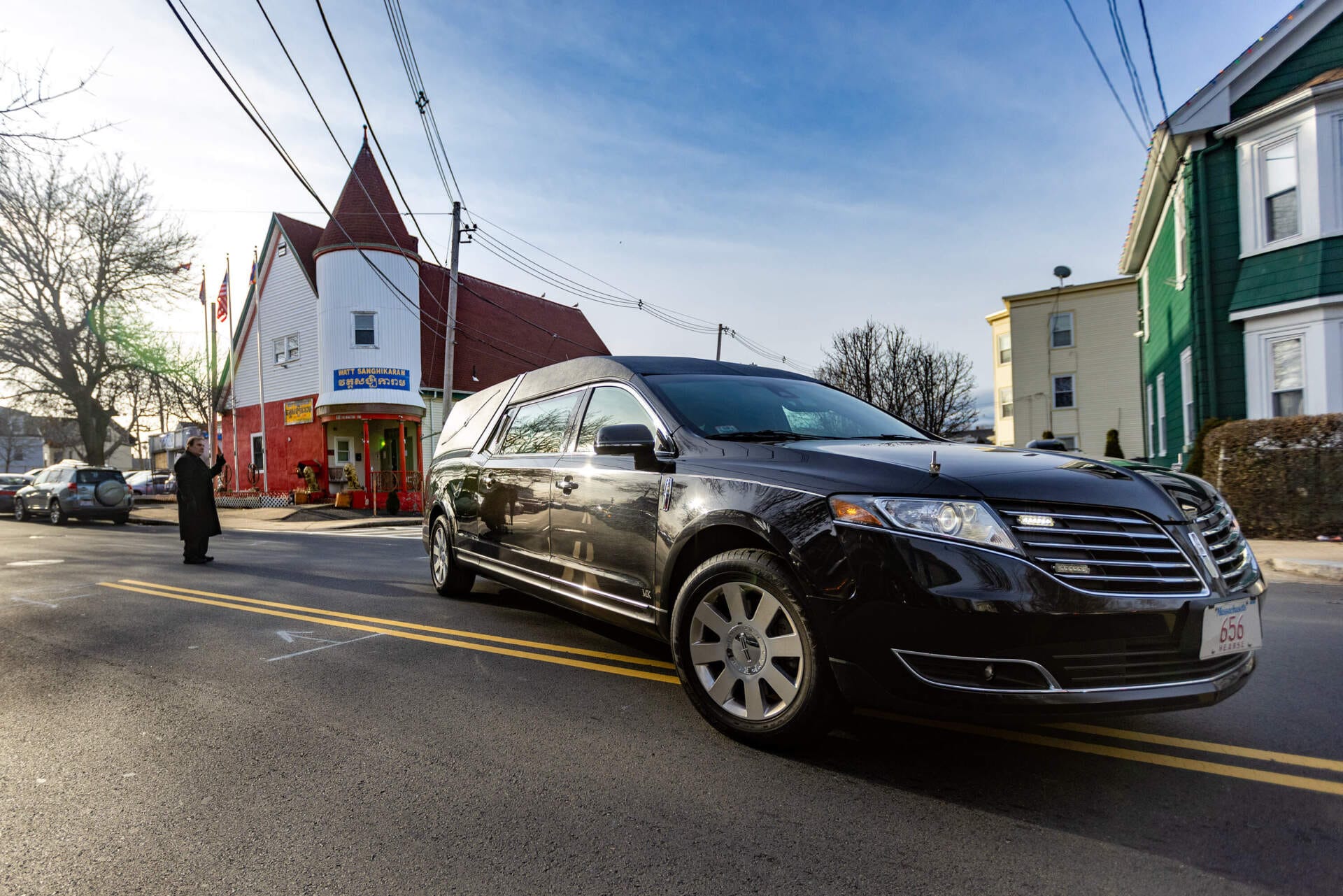 Varios familiares y amigos se abrazaron mientras el ataúd de Mel era llevado fuera del templo y colocado en un coche fúnebre. Más de 50 autos se alinearon para seguirlo hasta un cementerio en Peabody, donde Mel fue enterrado.