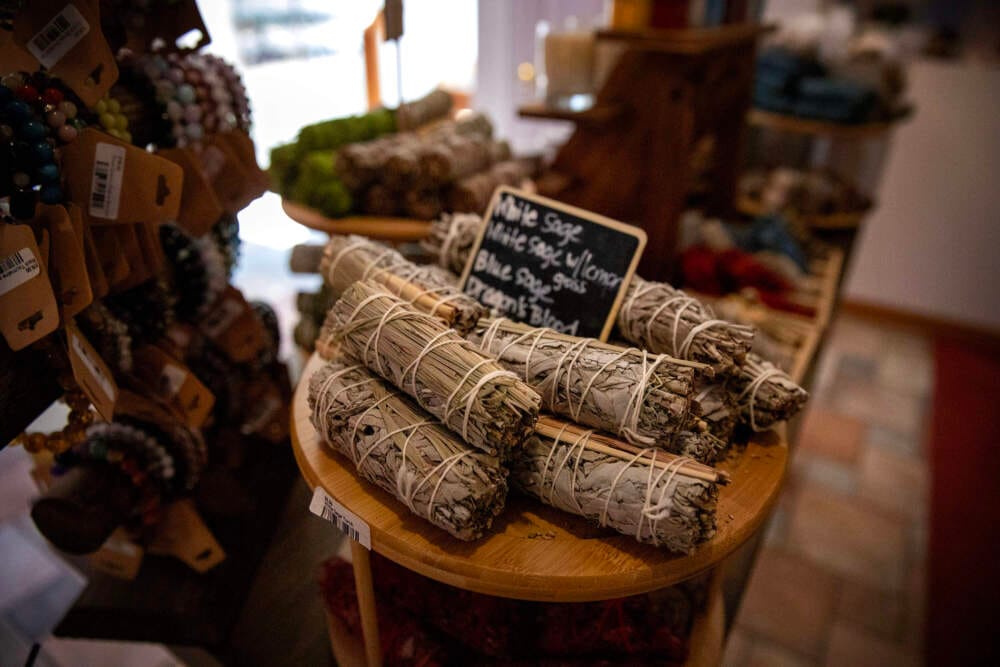 La tienda está escondida bajo un edificio de tres pisos en Jamaica Plain, con paredes llenas de cristales brillantes, barajas de tarot y libros. Una pared entera muestra cristales que están separados y categorizados por chakra, intención y signo zodiacal, una guía útil para aquellos que no saben por dónde empezar. La tienda también ofrece lecturas de tarot y sesiones de reiki (una práctica de sanación que implica mover y transmutar energía en el cuerpo). «Queremos que todos se sientan bienvenidos aquí», dice Kitty. «No importa en qué etapa de su viaje espiritual se encuentren».