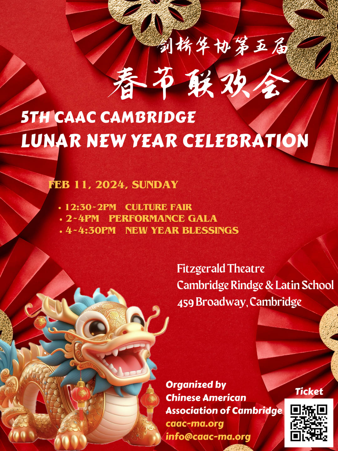 La Asociación Chino-Americana de Cambridge (CAAC), una de las organizaciones sin fines de lucro de la comunidad asiática local más destacadas de Cambridge, llevará la quinta celebración anual del Año Nuevo Lunar a la comunidad de Cambridge y las comunidades circundantes.