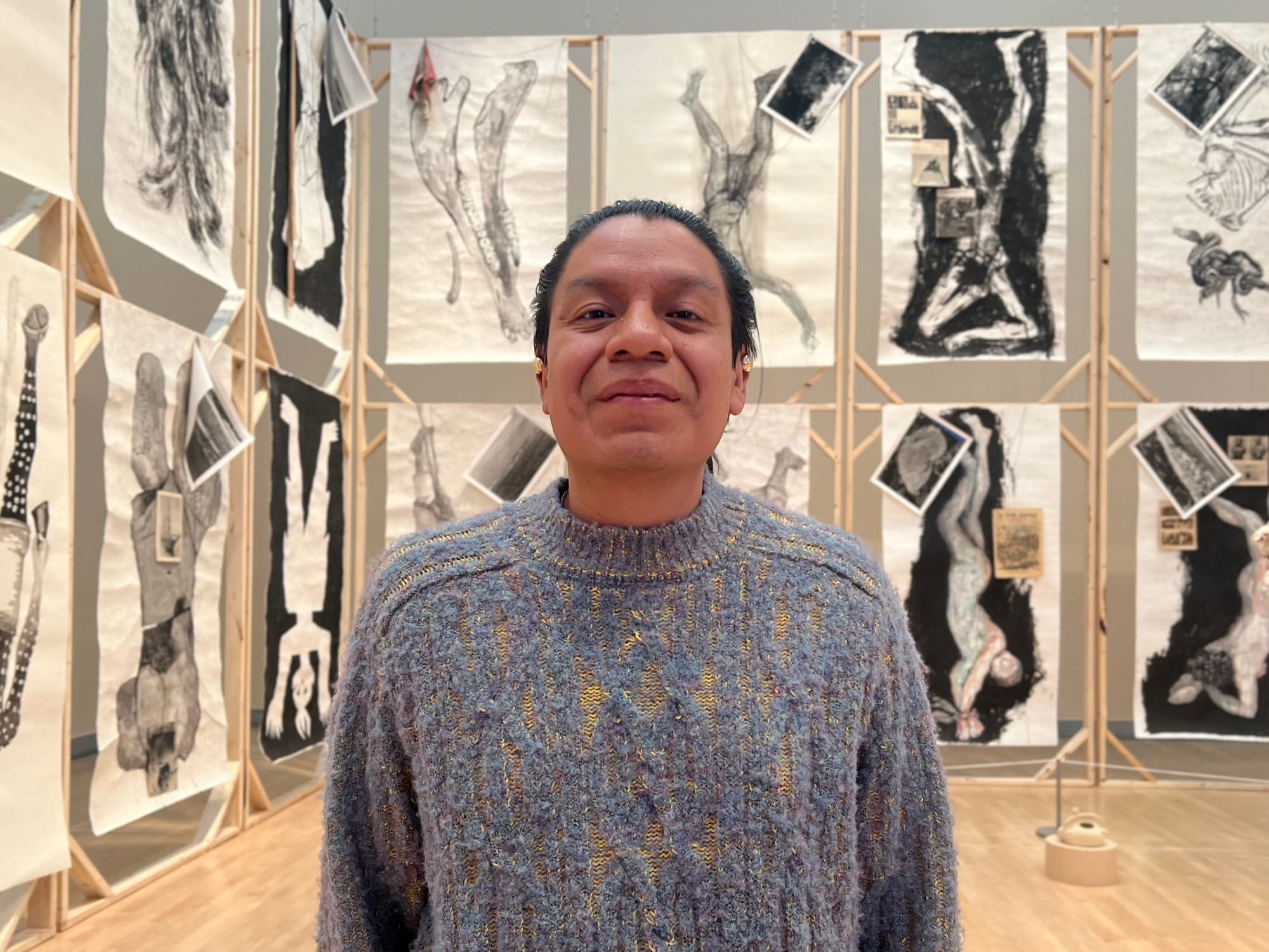 Martínez, un artista multidisciplinario de México, centra su arte en el colonialismo y su profundo impacto en las culturas indígenas, utilizando diversos medios como el dibujo, la escultura, el video y el arte performático.