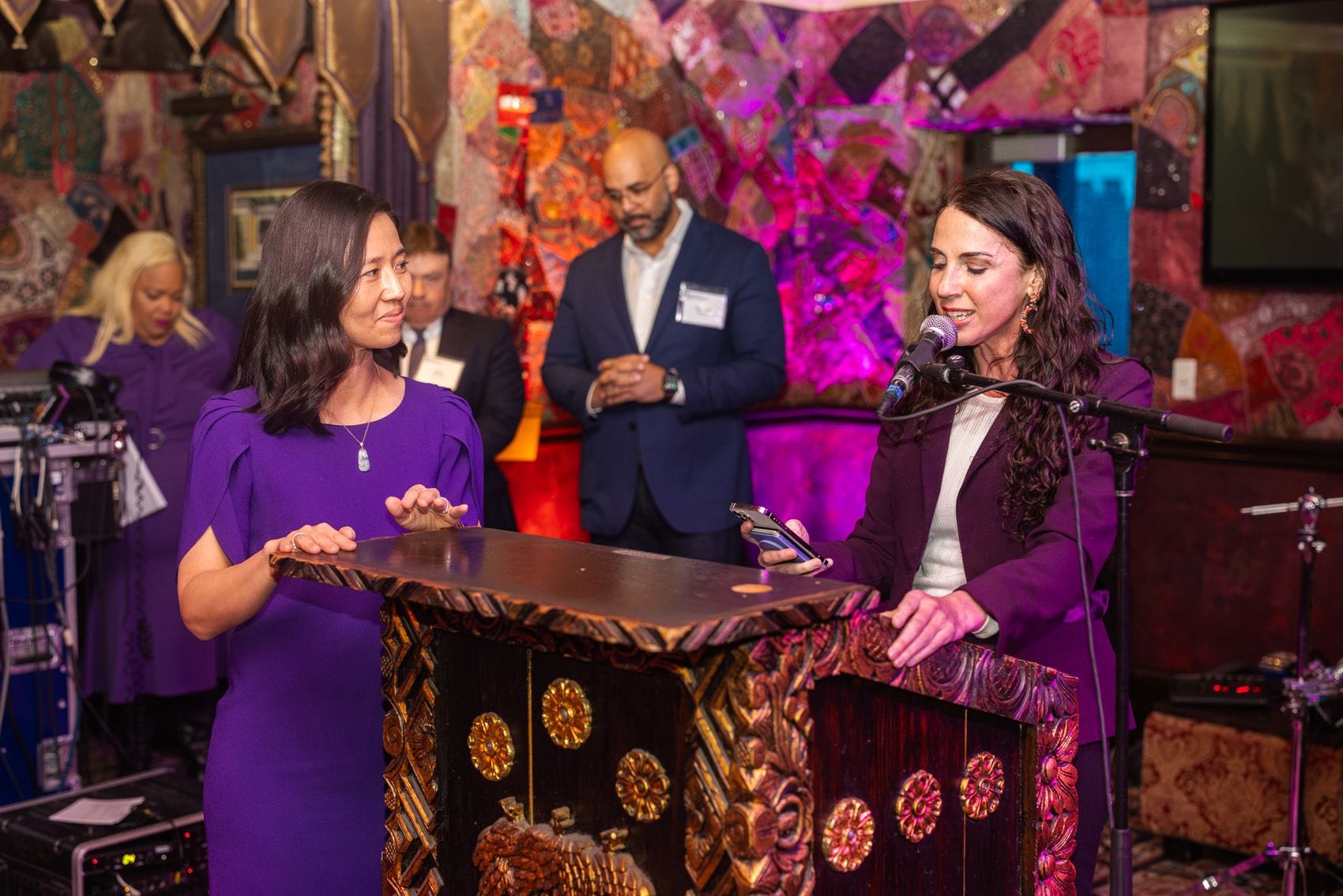La recepción anual reunió a líderes comunitarios, artistas y educadores para celebrar el talento y la dedicación de los estudiantes de la Boston Arts Academy. El evento contó con una actuación sorpresa de la auditora de Massachusetts Diana DiZoglio cantando “Savage Daughter” en honor al Mes de la Historia de la Mujer. La alcaldesa de Boston, Michelle Wu, se unió a un acompañamiento improvisado utilizando el podio como tambores.