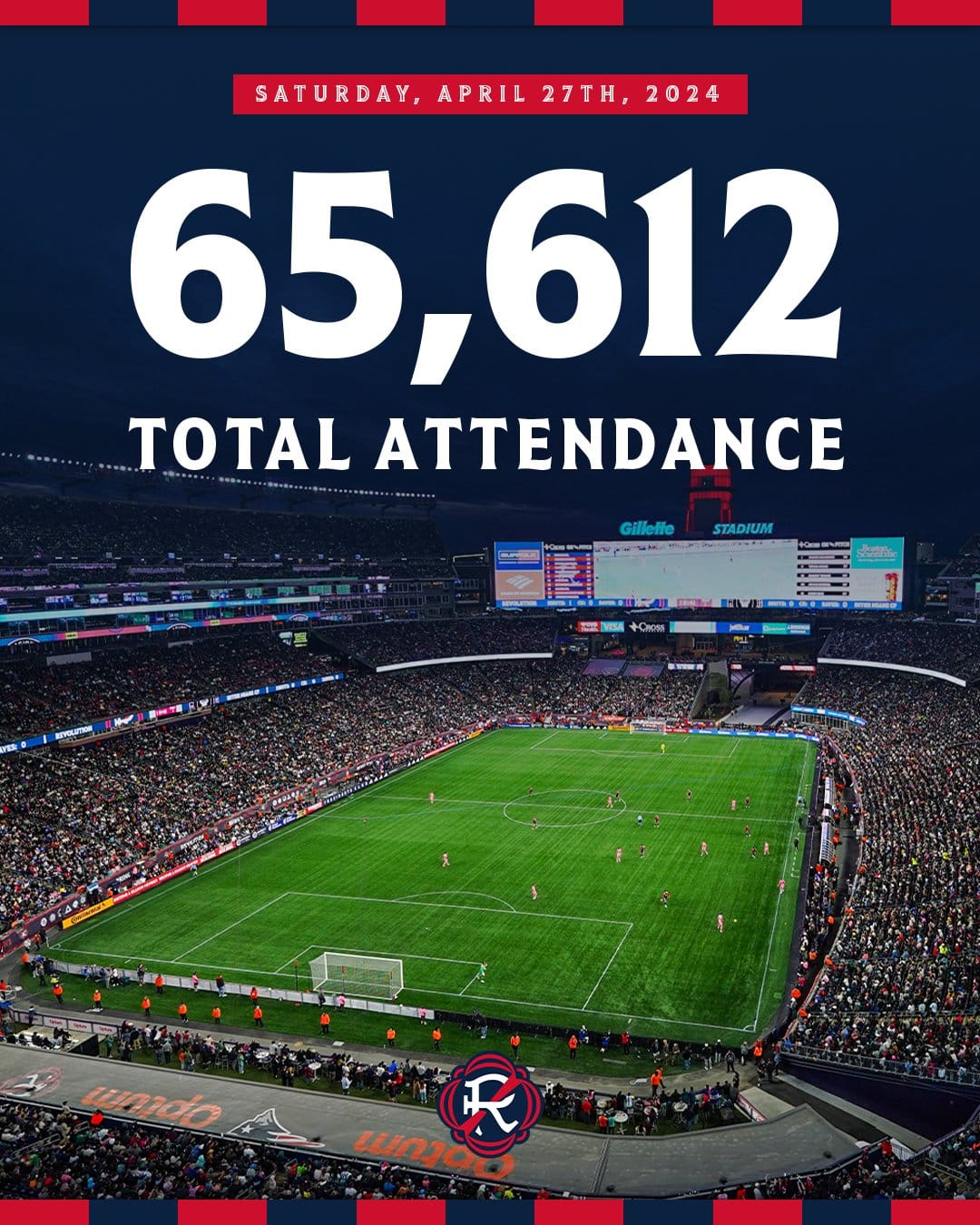 Foxboro, MA. El astro argentino, Lionel Messi, fue pieza fundamental en la victoria de 4-1 de su equipo, Inter Miami, ante el New England Revolution. El actual campeón del mundo registró dos goles y una asistencia ante el Revolution. El partido se llevó a cabo ante una cifra récord de 65,612 aficionados en el Gillette Stadium. Correspondiente a la fecha 11 de la MLS. Partido con más aficionados en toda la historia del New England Revolution, rompiendo el récord anterior de 61,316 (final de la Copa MLS 2002 ante el LA Galaxy).