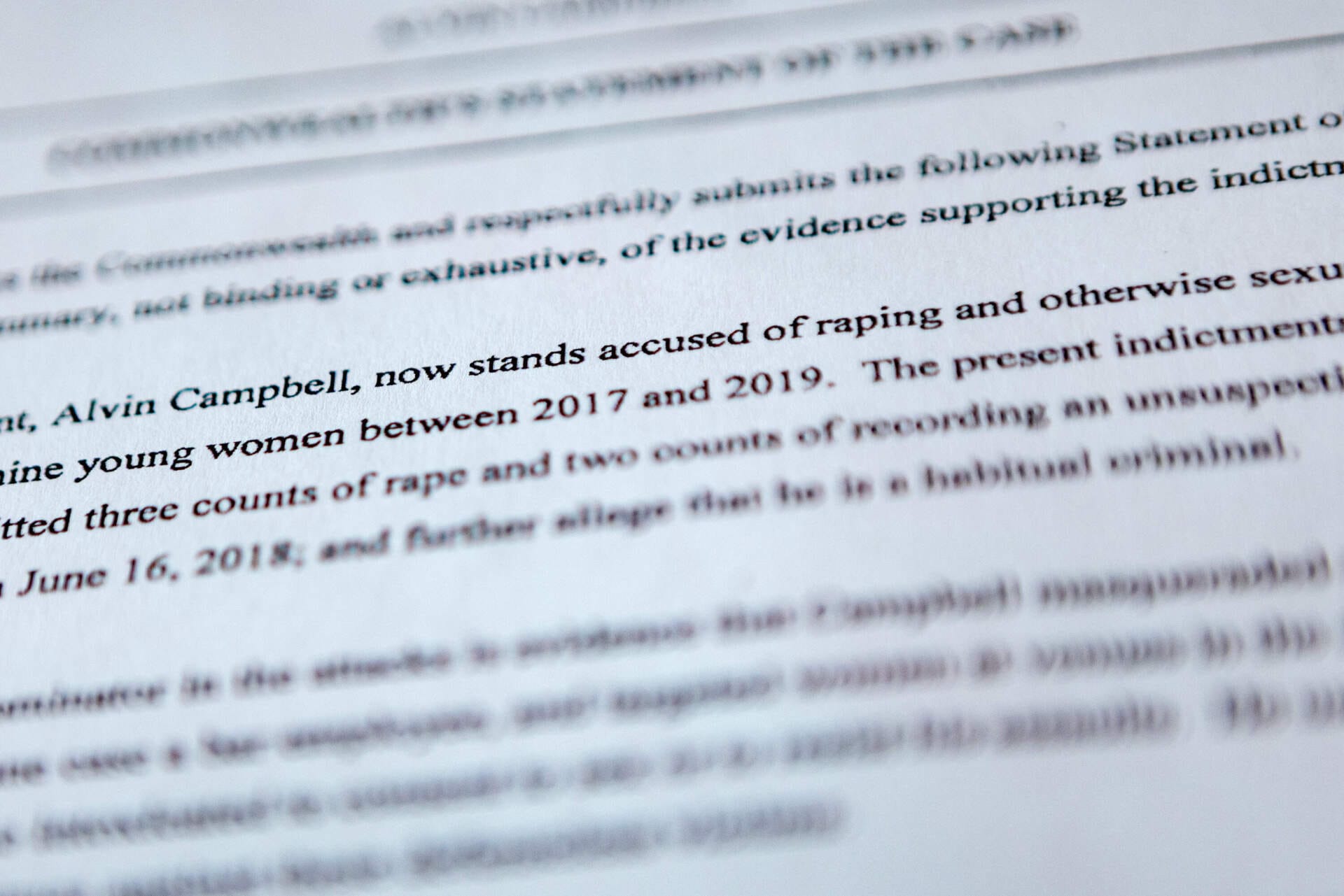 En una breve llamada telefónica, la mujer dijo que intenta no pensar en esa noche. Y se sorprendió al escuchar que Campbell había sido acusado de otros asaltos cuando lo conoció. WBUR no nombra a las víctimas de agresión sexual en las historias sin su consentimiento.