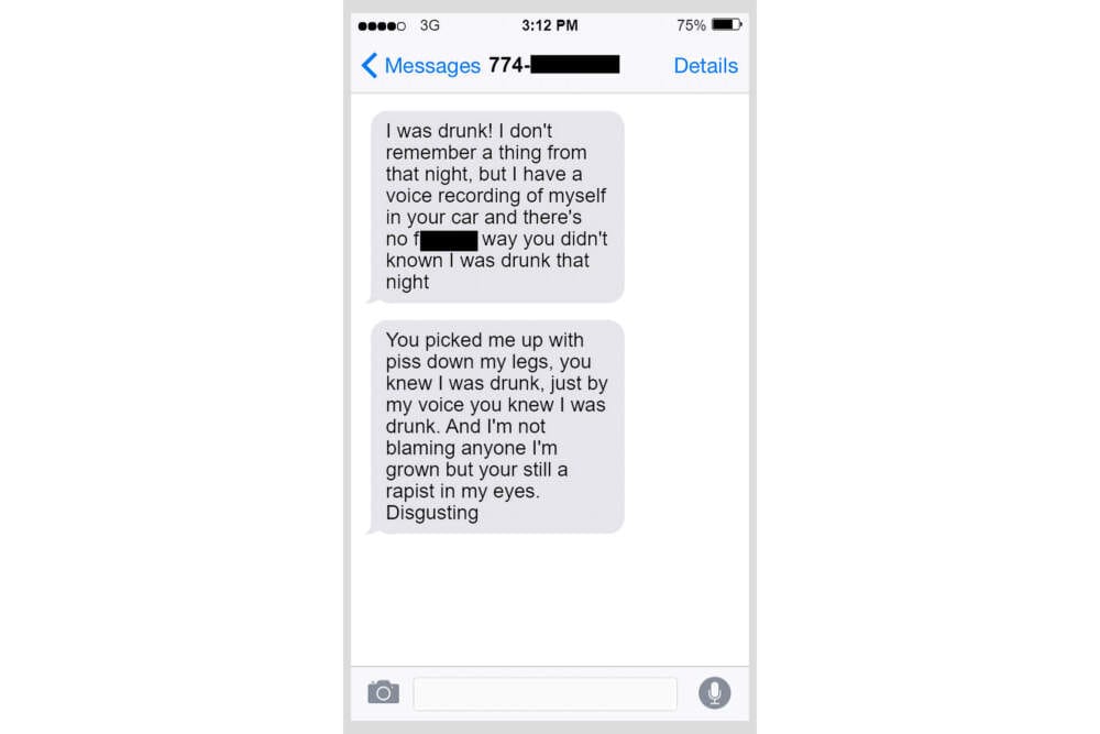 La mujer dijo que intentó denunciar la agresión sexual al personal de recepción en la sede de la policía de Boston, pero «no fueron útiles», según mensajes de texto resumidos por los abogados de Campbell en una moción de descubrimiento. El mismo documento indica que un oficial luego le dijo «que tenía que hacer que sus acusaciones parecieran un secuestro» para que el informe fuera tomado en serio. La policía de Boston no respondió a una solicitud de comentarios.