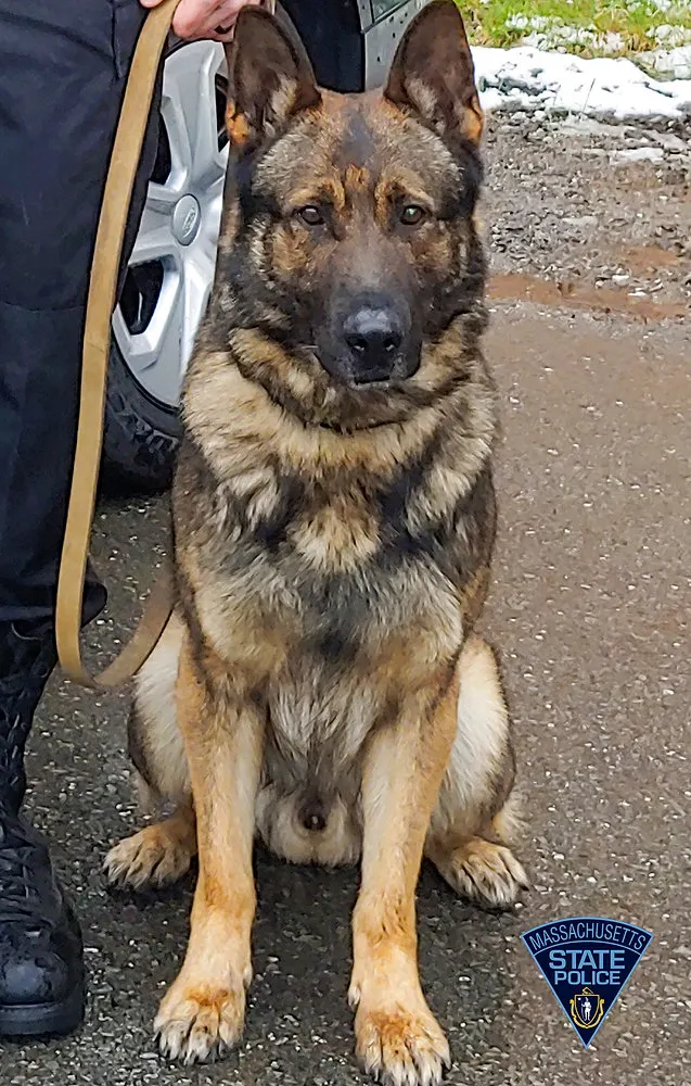 A pesar del impacto, el Sr. Kennedy continuó huyendo a pie hacia los bosques cercanos. El agente Nicholas Favaloro de la Unidad K9 de la Policía Estatal de Massachusetts lo persiguió en su patrulla y desplegó a su compañero K9 Odin, quien logró detener al sospechoso.