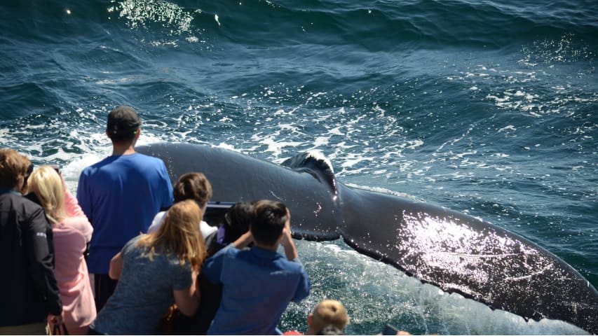 Los avistamientos de ballenas, que parten del Central Wharf de Boston, duran entre tres y cuatro horas y se realizan en catamaranes de alta velocidad con cubiertas de observación al aire libre y espacios interiores con grandes ventanales. A bordo hay un bar completo y se pueden comprar aperitivos ligeros.