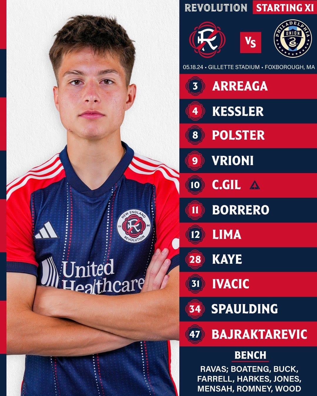 Los dirigidos por Caleb Porter llegaban a este partido con la obligación de ganar y sumar 3 puntos vitales para poder salir del sótano de la tabla de posiciones de la MLS. El Revolution tuvo control del partido en los primeros 15 minutos, hasta que sufrió la expulsión de Ryan Spaulding. Philadelphia Union anotó el primer gol de la noche al minuto 38′. El delantero argentino del Union, Julián Carranza, aprovechó al máximo un centro letal de Jack McGlynn por la banda izquierda. Carranza suma 6 goles esta temporada con el Union. La defensa del Revolution se vio muy mal en el gol de Carranza, marcación muy floja por parte de Mark-Anthony Kaye, la cual le permitió al ariete argentino aparecer solo en la zona defensiva del Revolution.