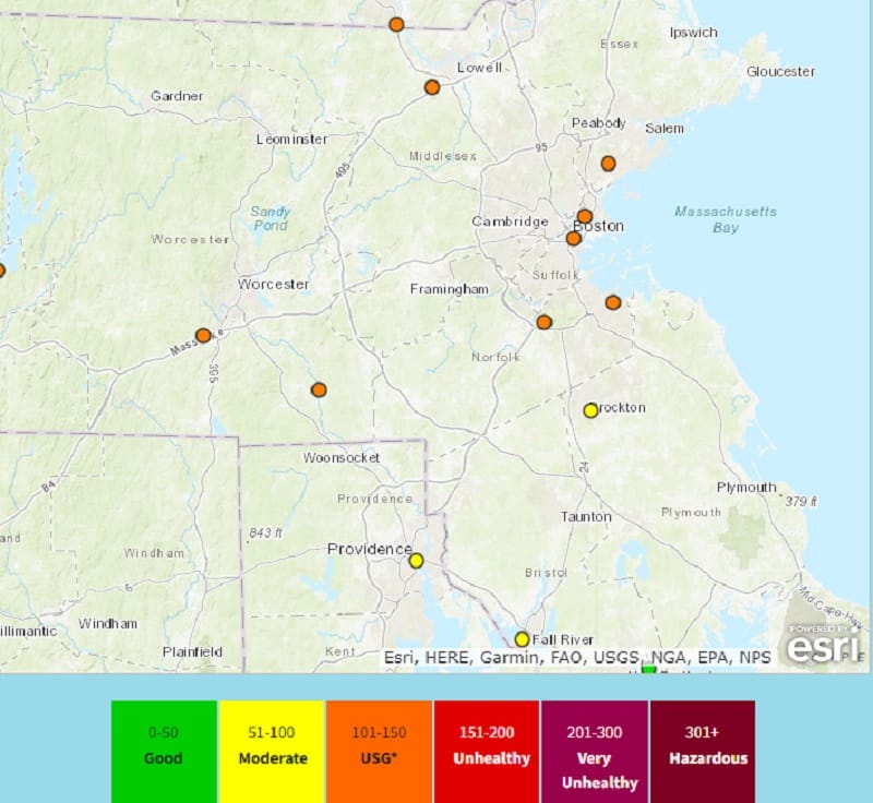 Índice de Calidad del Aire previsto para el miércoles en Massachusetts