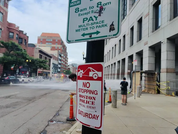 “Si saliera de mi oficina menos de un minuto antes, creo que me habrían arrastrado por Boylston”, escribió Kelly Davidson en X, “El agua salió disparada del Hynes Convention Center frente a mis ojos”.