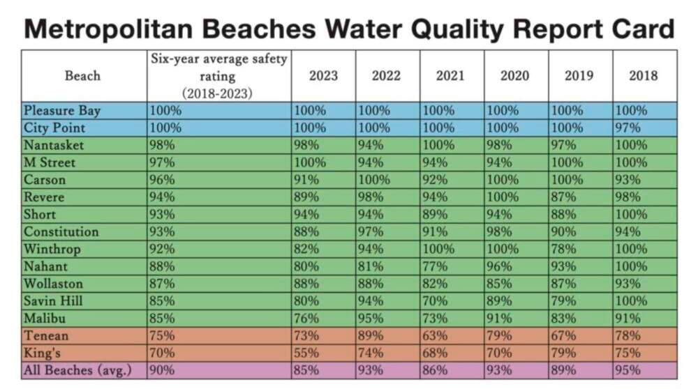 Eso es según un informe anual de la organización sin fines de lucro Save the Harbor/Save the Bay. El grupo califica 15 playas metropolitanas en función de la frecuencia con la que son seguras para nadar durante el verano.