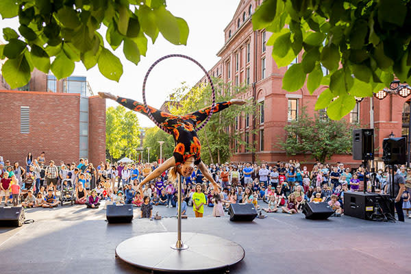 Salga al aire libre para disfrutar de animadas actuaciones musicales y circenses, juegue al minigolf y haga una corona de flores.