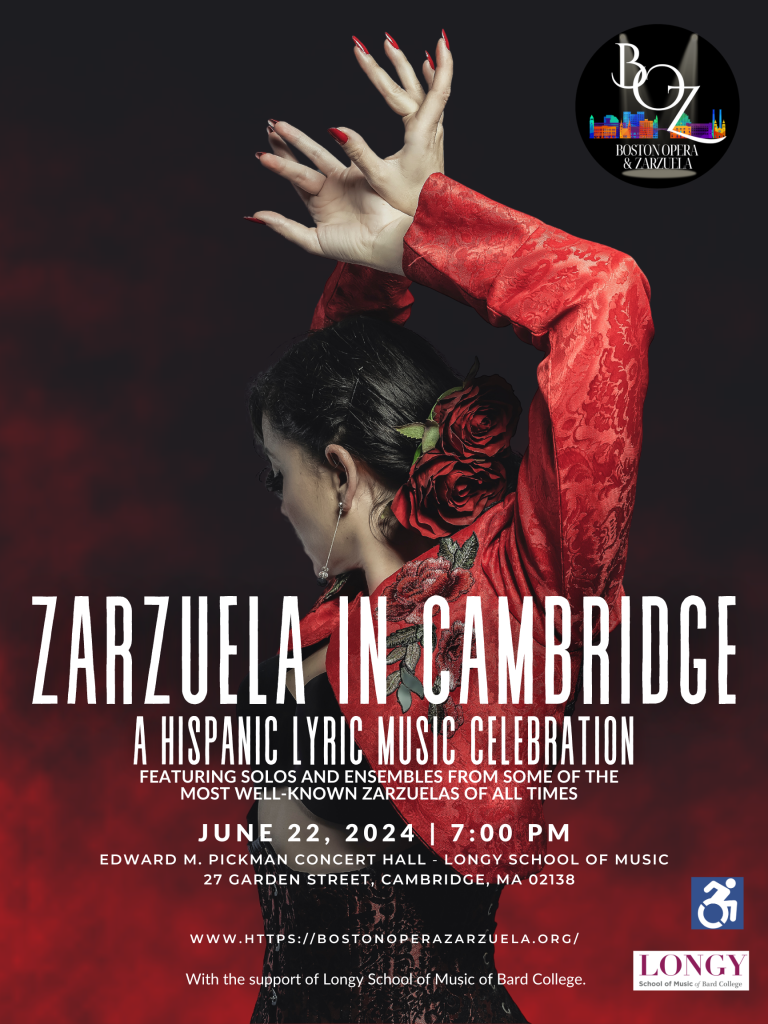 Boston Opera & Zarzuela presenta Zarzuela en Cambridge: una celebración de la música lírica hispana. Con solos y conjuntos de algunas de las Zarzuelas más conocidas de todos los tiempos.