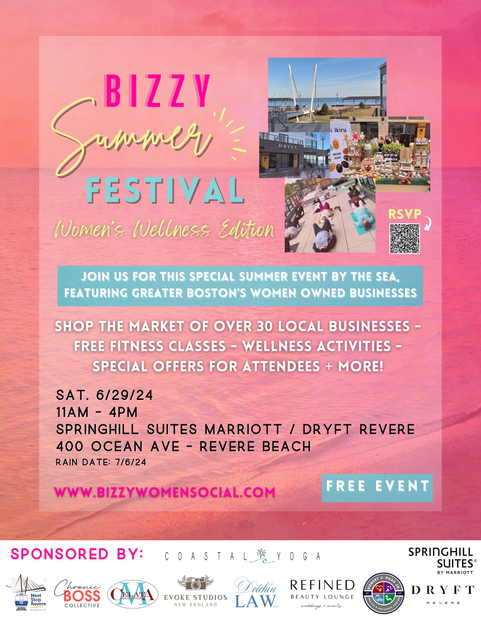 El horario del mercado es de 11 am a 4 pm, fuera de Dryft Revere y SpringHill Suites Marriott. Busque el bar al aire libre en Dryft.