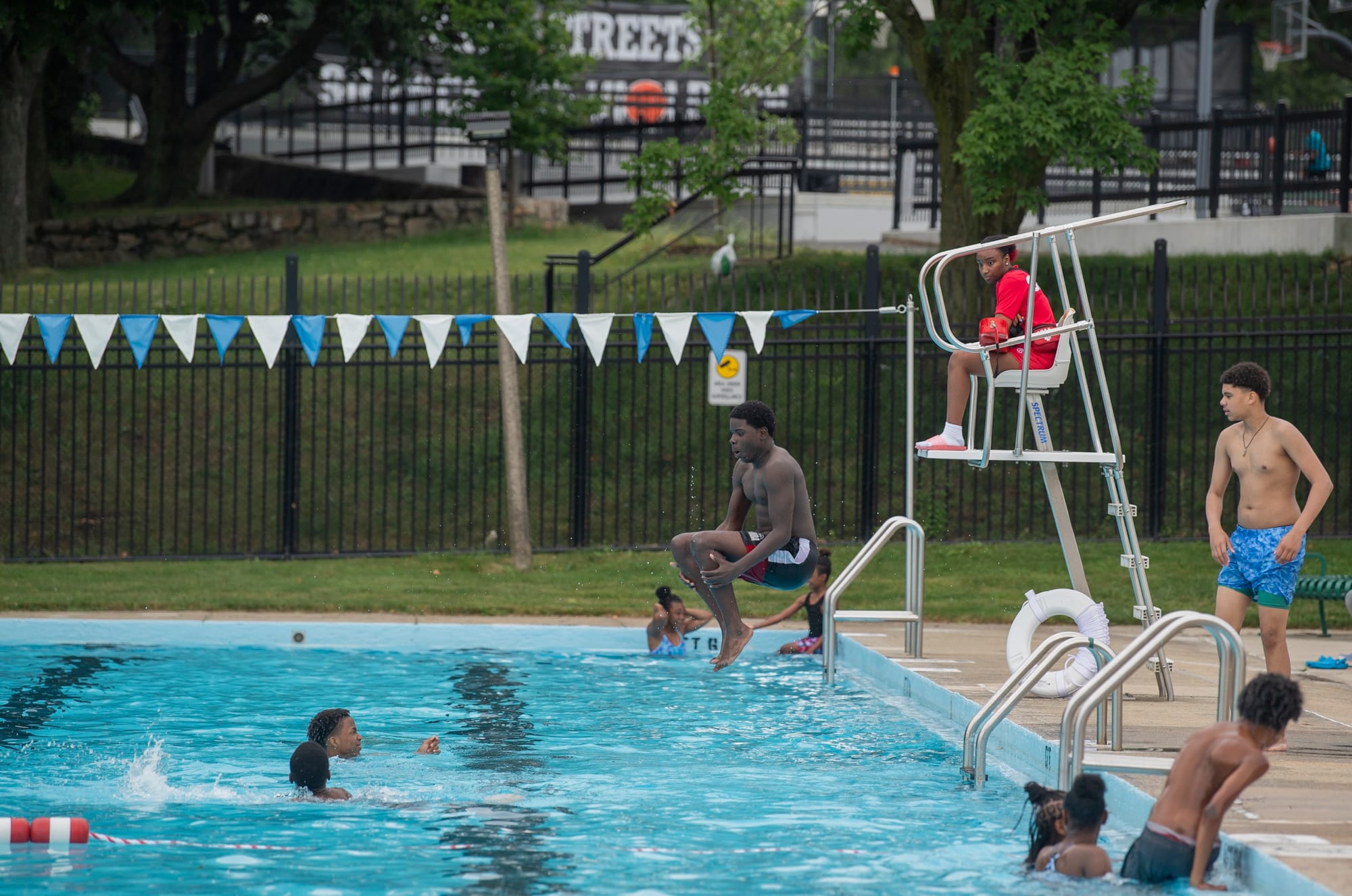 “Como ex salvavidas, sé lo mucho que significan las piscinas comunitarias para vecindarios como Roxbury”, dijo la vicegobernadora Kim Driscoll. “Hoy marca la reapertura de la piscina Cass y las piscinas en todo el estado, el primer día de servicio de nuestros salvavidas en todo el estado y el comienzo de la diversión del verano.