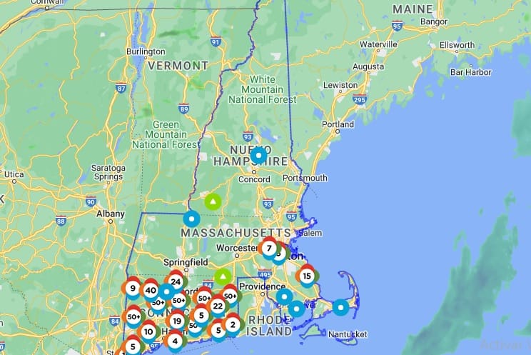 Según la ultima actualización de la empresa Eversourse del jueves a las 9:56 am, cientos de clientes continuaban afectados, sobre todo en el área de Springfield.