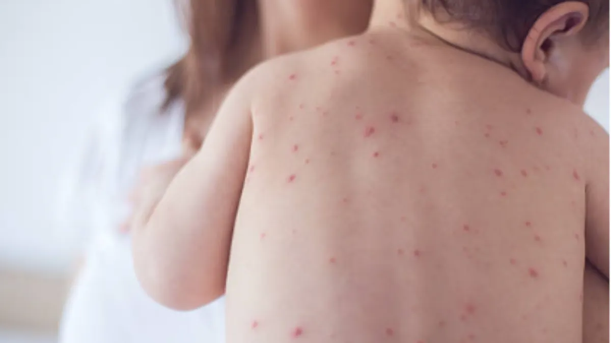 Los síntomas del sarampión incluyen fiebre alta, tos, secreción nasal y ojos llorosos varios días antes de desarrollar una erupción corporal.