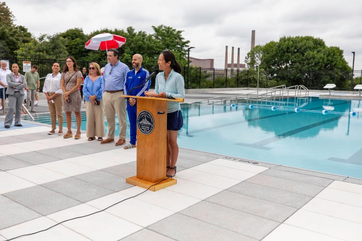 La reapertura de la piscina Clougherty marca la última de una serie de renovaciones e inversiones recientes en piscinas por parte de la ciudad, y se alinea con el compromiso del alcalde Wu de hacer de Boston la mejor ciudad para las familias.
