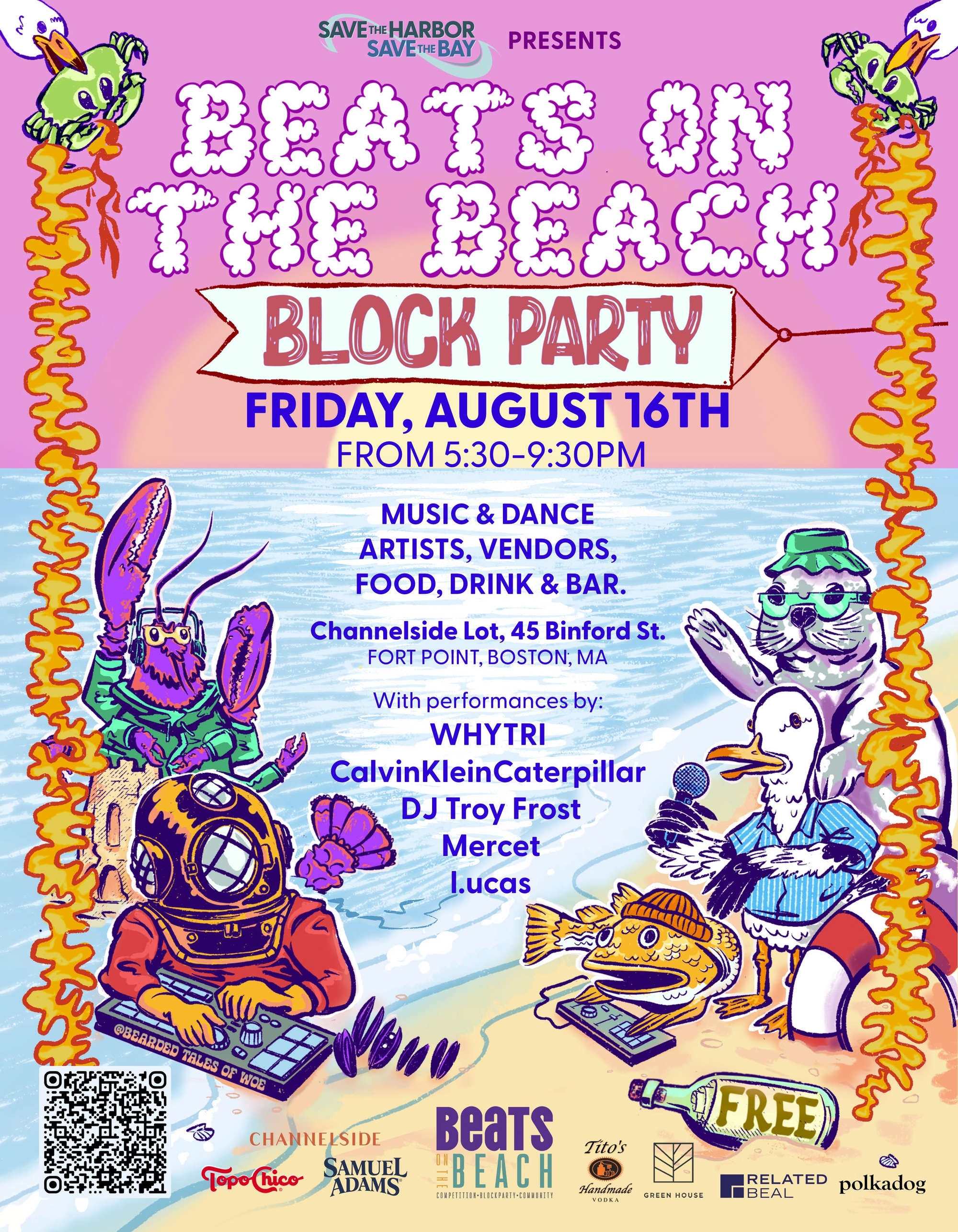 Beats On The Beach Block Party es una celebración comunitaria de arte y música que presenta presentaciones en vivo de una mezcla de artistas emergentes y conocidos, un vibrante mercado de arte con vendedores locales, así como comida, bebida y celebración.