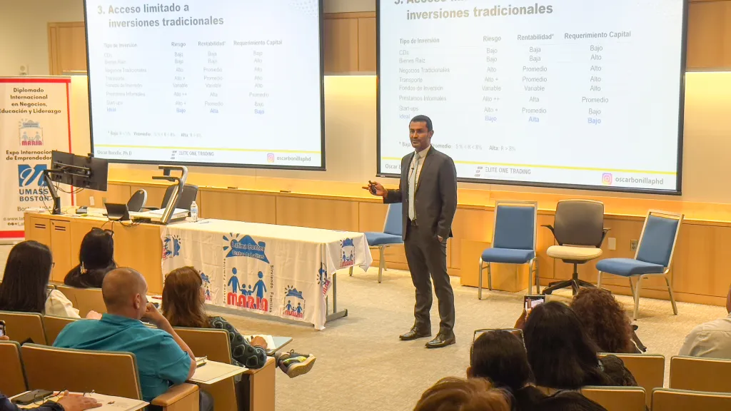 La Universidad de Massachusetts en Boston, fue testigo de historias latinas tanto a nivel de emprendedores exitosos como expositores del más alto rango académico como fue el caso de Oscar Bonilla, Trader Profesional, quien es profesor de Finanzas y Economía en Baruch College -Zicklin School of Business en City University de New York y profesor de Finanzas en la Pontificia Universidad Javeriana de Bogotá. Recibió un MBA y un Doctorado en Ingeniería Económica en Stevens Institute of Technology.