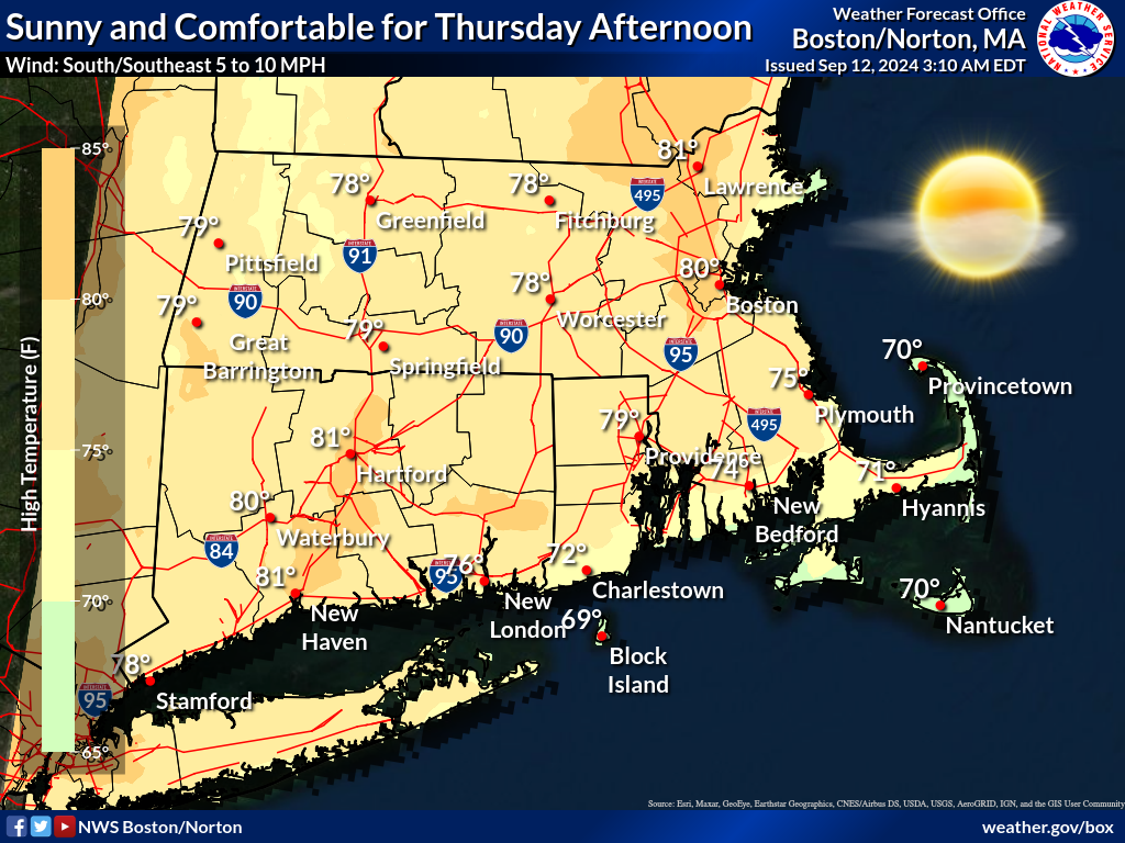 Disfrutaremos de varios días cálidos y soleados en Boston, con temperaturas agradables. Sin embargo, un frente frío débil podría traer algunas lluvias aisladas el viernes por la tarde. Este frente impulsará las brisas marinas durante el fin de semana, pero no afectará significativamente las temperaturas.