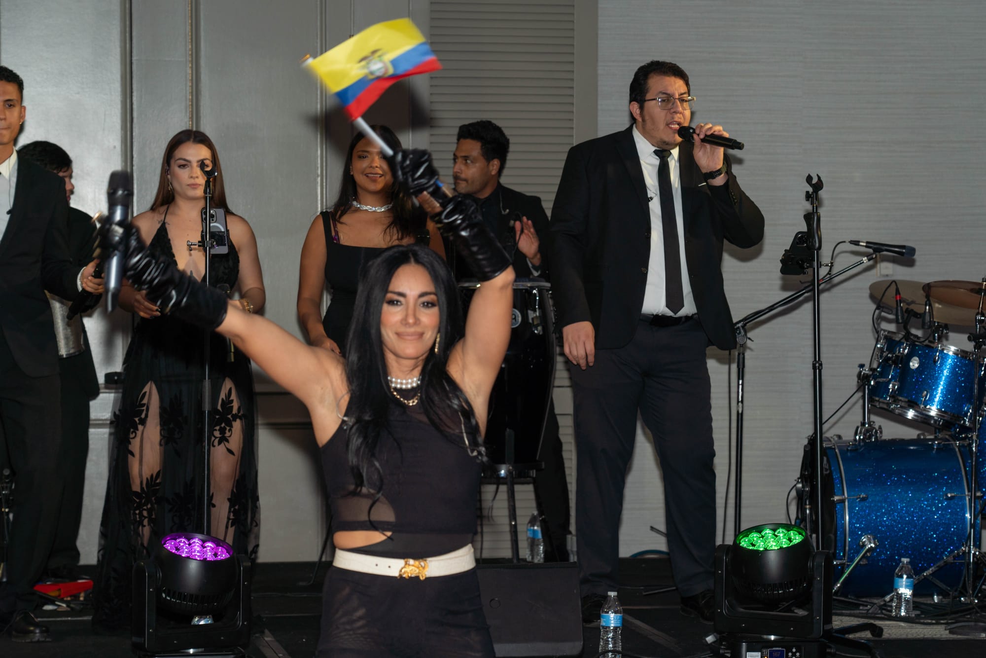 En un ambiente cargado de emoción y altruismo, donde a generosidad salió victoriosa, Pía Vásquez fue la encargada de entonar el Himno Nacional de Ecuador, momento en que a más de uno le rodó una lágrima por su mejilla añorando esa patria que está físicamente lejos, pero que está tan cerca a la vez, por la cual el corazón late de emoción.