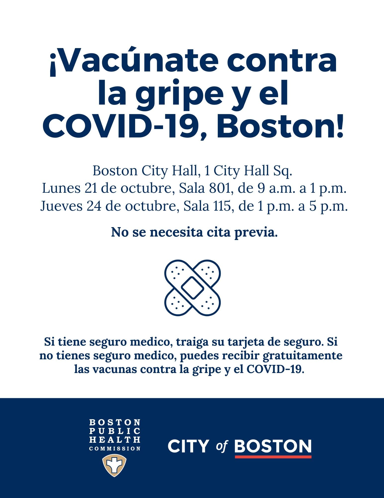 Este miércoles 24 de octubre se ofrecerán vacunas gratuitas contra la gripe y la COVID-19, en el City Hall de Boston.