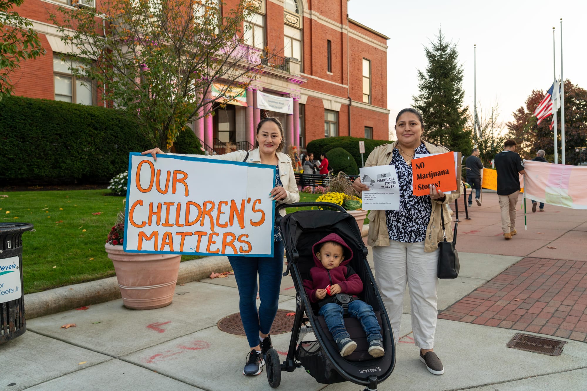 Gloria Portillo es la mamá de Jacob que tiene 2 años 6 meses, quien fue una de las últimas madres en llegar a la manifestación en contra de la apertura de las tiendas que comercializarían marihuana. Se unió al grupo al pie del City Hall, luego de salir de su trabajo, y con su pequeño hijo sentado en un cochecito comenzó a sostener una pancarta escrita en inglés que decía: “Our children´s matters” (Los asuntos de nuestros hijos). “Estoy aquí haciendo ver como residentes y madre de Riviera que no estamos de acuerdo que abran ese tipo de negocios porque en un futuro yo podría utilizar las escuelas de aquí, entonces, entre más tiendas de marihuana hayan cerca de las escuelas y de la ciudad significa que no le estamos dando prioridad a la salud de los niños, a la salud de los residentes de Revere. Y no podemos decir que es algo recreativo porque no es recreativo, es adictivo. Debemos ser más inteligentes en pensar cuál es la recreación que les beneficia a nuestros hijos y no lo que les perjudica para su salud”.