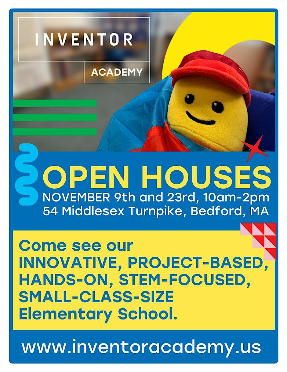 Las próximas Jornadas de puertas abiertas de la Inventor Academy, una escuela primaria privada en Bedford, MA, que ofrece un plan de estudios único centrado en STEM y en la atención plena en un entorno holístico y centrado en el estudiante.