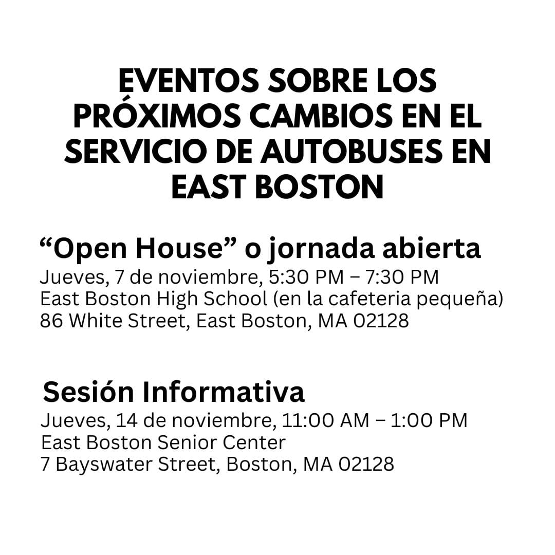 Jornada abierta para obtener información sobre los cambios de servicios de autobuses en East Boston