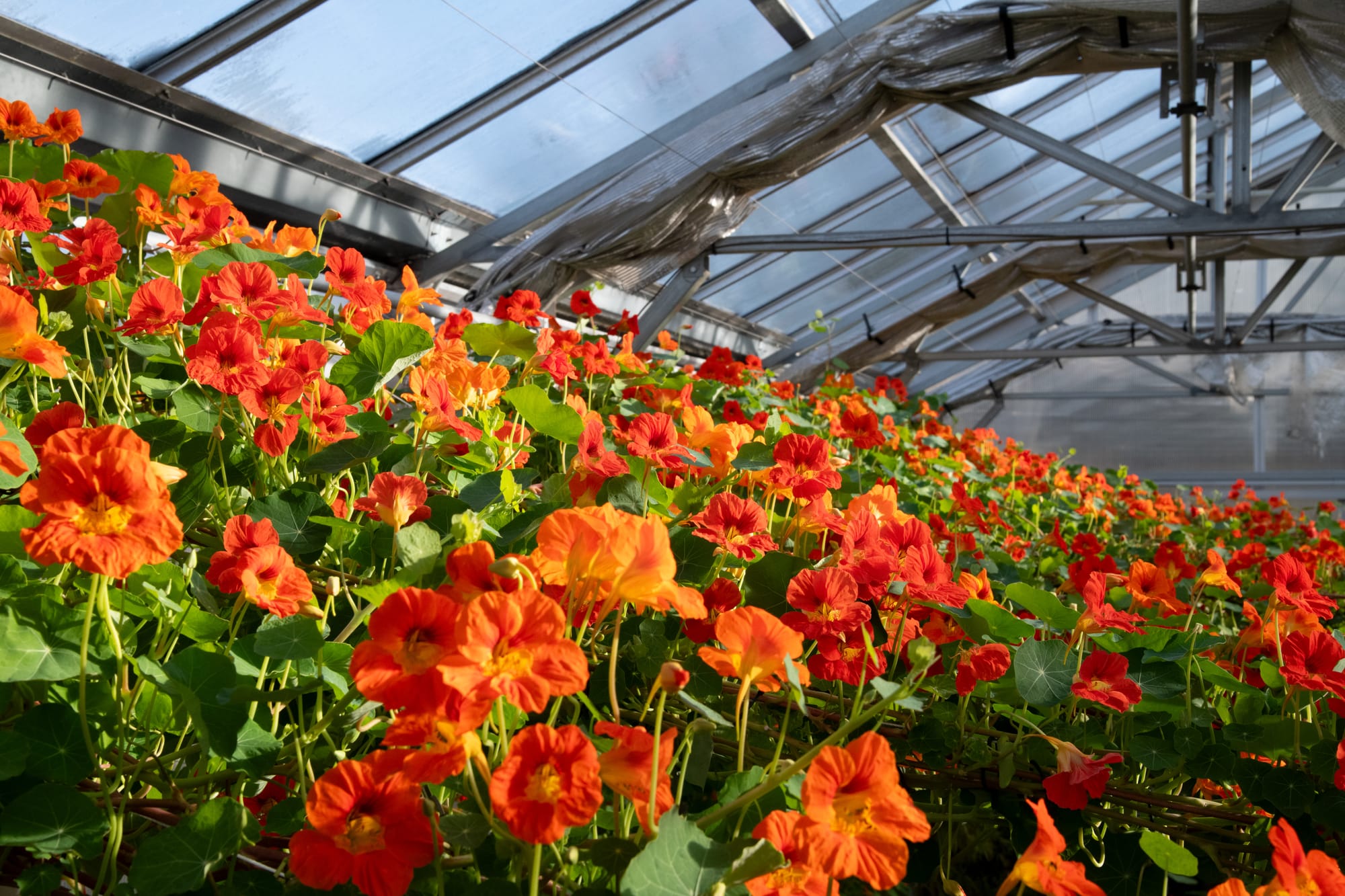 Las nasturtiums son originarios de Sudamérica, específicamente de las montañas de los Andes en Perú y fueron utilizados primero por los inkas como un vegetal y medicina natural. Rumbley agregó que estas plantas, en su variedad “Gleam” (una variedad de las nasturtiums), tienen una historia vasta que las ha llevado por todo el mundo: “Ésta variedad fue seleccionada a finales del siglo 19 en un jardín fuera de un monasterio en el norte de México”.