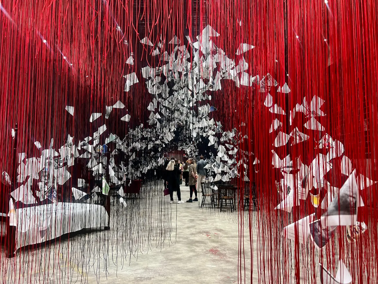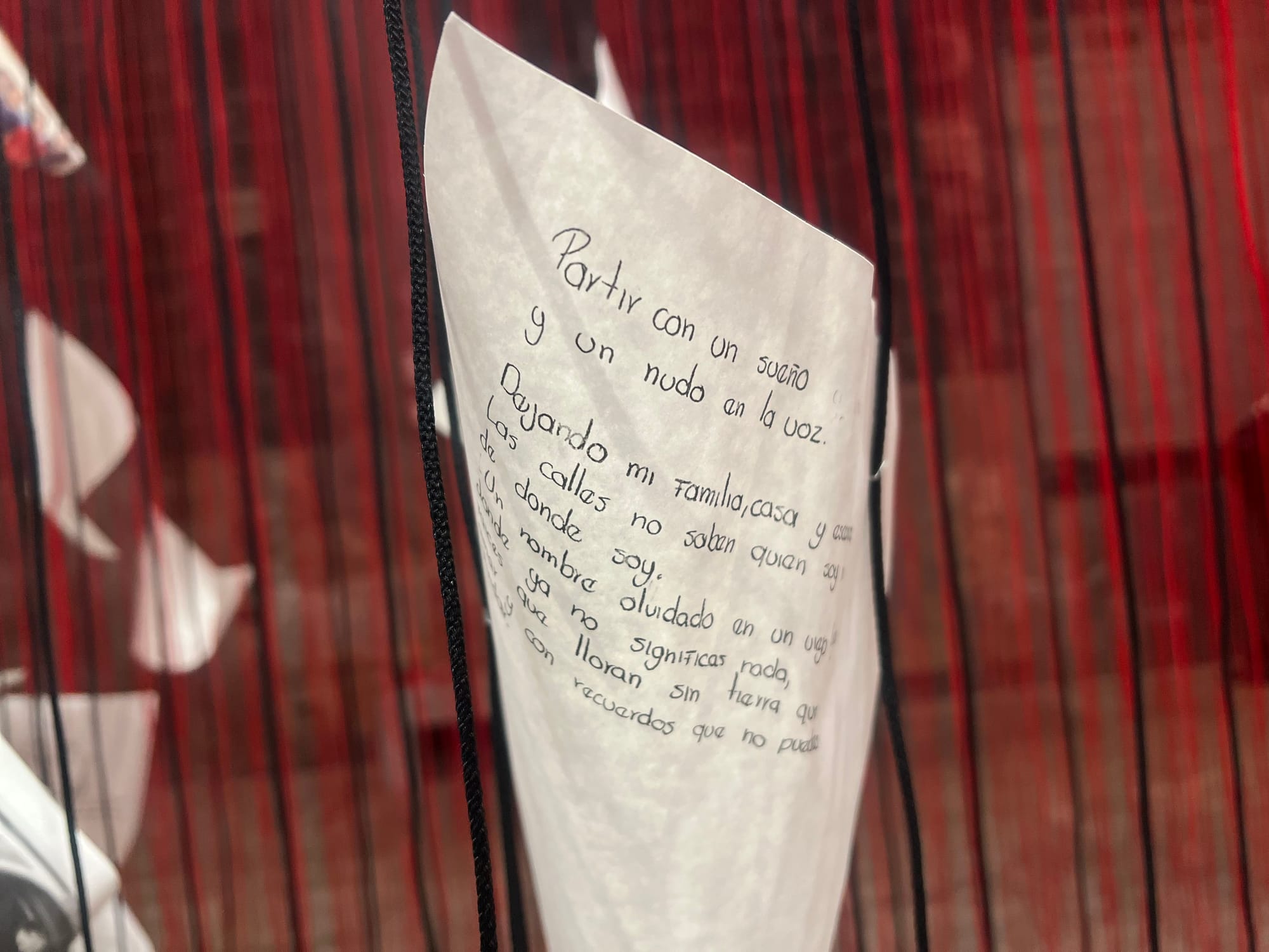 - Home Less Home: Una enorme “casa” hecha de cuerdas llena el espacio con objetos cotidianos y documentos personales suspendidos en el aire: pasaportes, cartas, papeles de inmigración. La artista nos invita a pensar en cómo creamos hogar con recuerdos, palabras, y objetos.