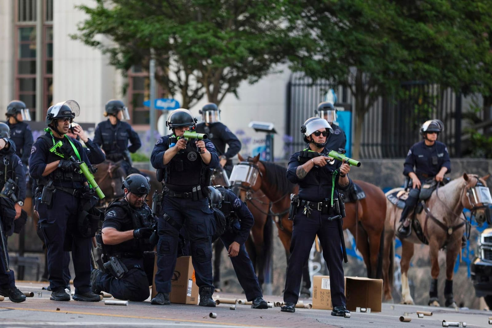 - Noche del viernes. Primeras protestas, según el DHS, unas 1,000 personas en las calles. Reuters no pudo verificar la cifra. La policía detuvo manifestantes tras advertencias de dispersión. Esa misma tarde, la alcaldesa Karen Bass emitió un comunicado rechazando los operativos. “Estas tácticas siembran terror en nuestras comunidades. No lo permitiremos”, dijo. El director del FBI, Kash Patel, respondió un día después como si nada: “We will”.