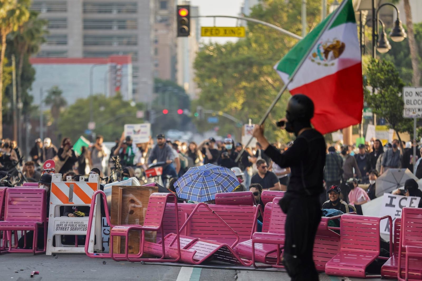 No fue casualidad que entre los manifestantes se vieran numerosas banderas de México, ondeadas como símbolo de resistencia cultural frente a las redadas. En las calles, la protesta se convirtió también en un acto de identidad.