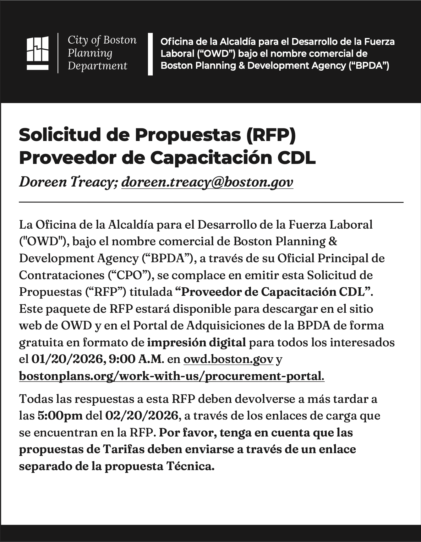 Solicitud de Propuestas (RFP) Proveedor de Capacitación CDL