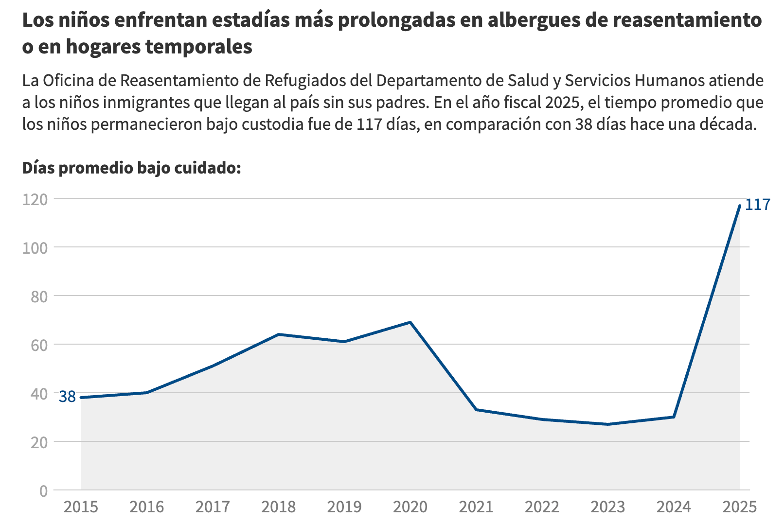 Ya casi no hay liberaciones. Según la oficina de reasentamiento, en 2024 los niños bajo su custodia permanecían en albergues o en cuidado temporal por un promedio de un mes. En febrero, ese tiempo había aumentado a más de medio año.